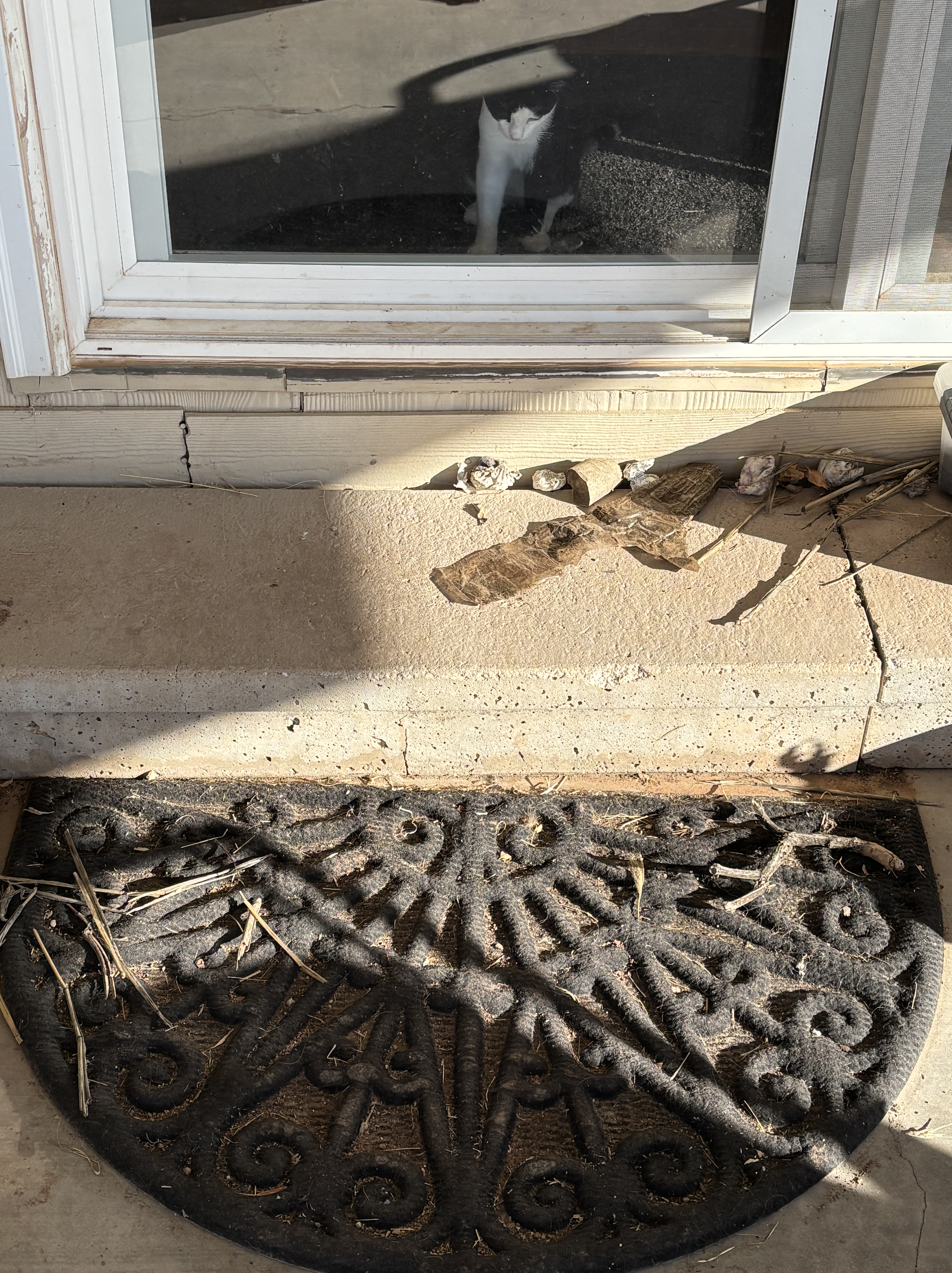 into the sliding glass door.