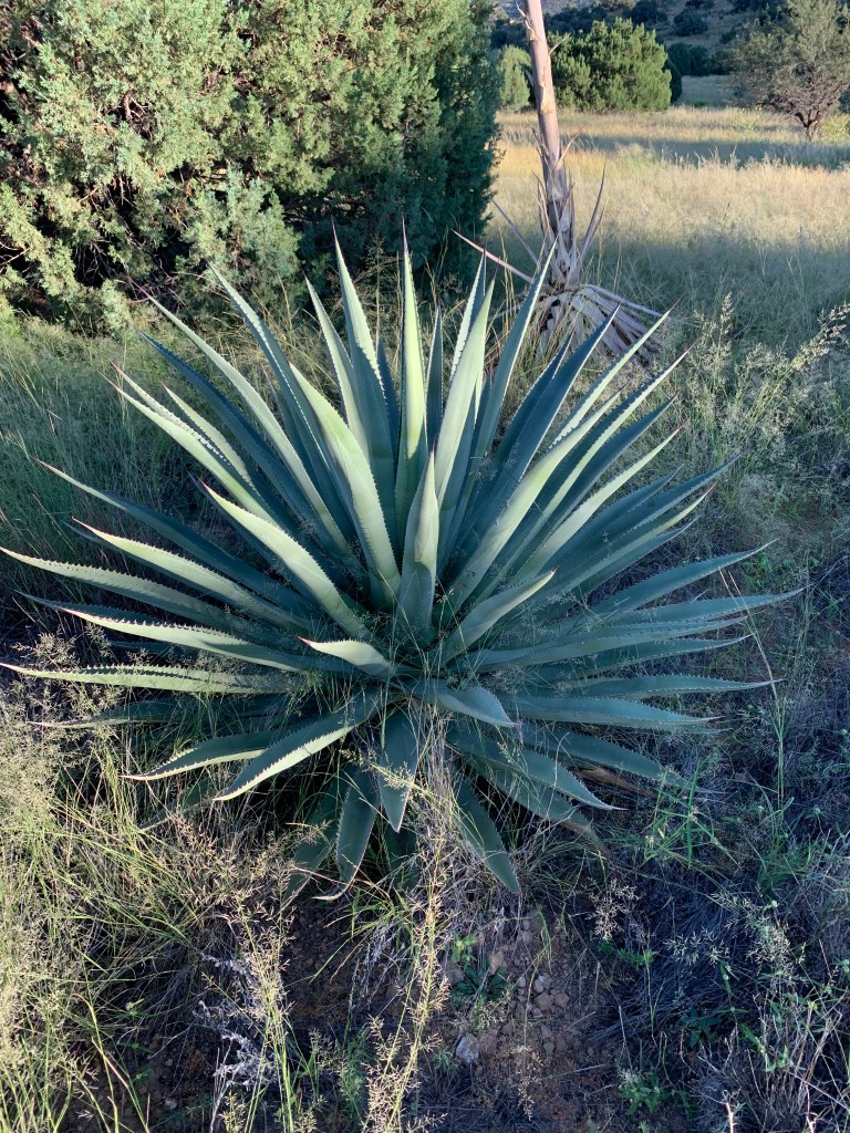 with cacti and shrubs,