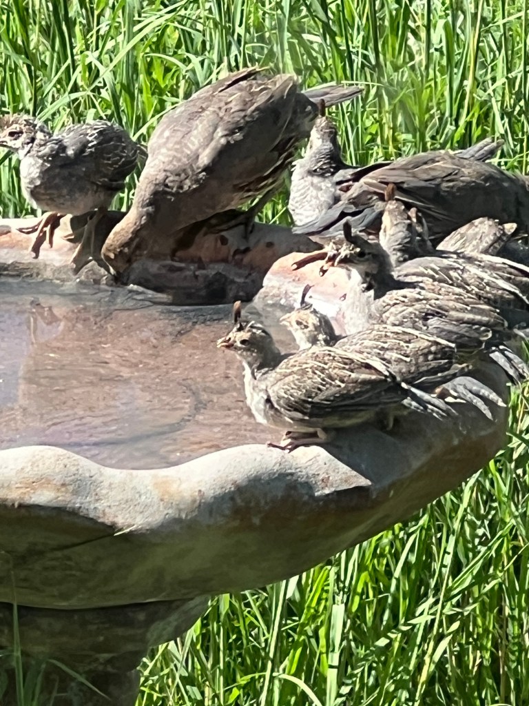 crowded undersized birdbath